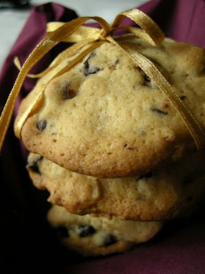 Czyli ciasta z piegami. Rodzynkowymi. Ciasteczka raz-dwa-trzy, bo robi się je migiem. I ciasteczka czego-dusza-zapragnie, bo można je napakować tym, co się najbardziej lubi. Te pieguski sprzedawane w sklepach mają kilka wariantów smakowych, bo, wiadomo, nie każdy lubi te same rzeczy. A tak można samemu stworzyć sobie własną ulubiona kombinację. Kokosowe? Proszę bardzo: dodać więcej wiórków i płatków kokosowych. Z czekoladą? Dorzucić wszystkie rodzaje czekolady, dodatkowo oblać czekoladową. Jeśli nie lubi się orzechów, nie trzeba ich dodawać.