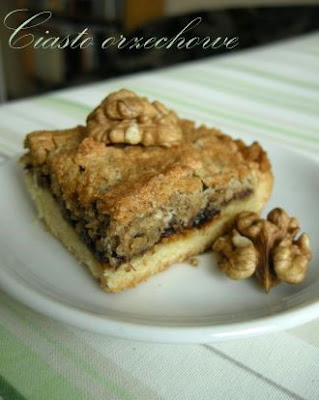 - masa: powidła śliwkowe (możecie użyć ulubionych powideł lub gęstej konfitury), ¾ szklanki świeżych surowych białek, 300 g orzechów włoskich (obranych i bez łupin), łyżka cukru pudru, 3 łyżki drobno pokrojonych rodzynek lub smażonej skórki pomarańczowej