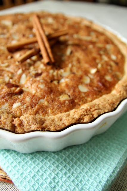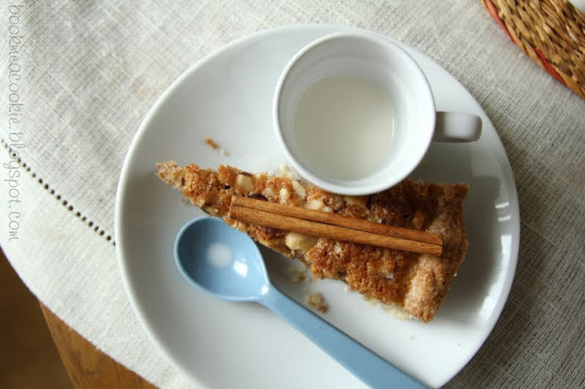 Jest taki moment podczas pieczenia, że zapachy z piekarnika zaczynają wydostawać się poza kuchnię – najpierw lekko, przelotnie zapachnie, potem ten zapach staje się intensywniejszy i słodki. Czuć przyprawy, kruche ciasto, nadzienie – to jest jakaś zapachowa bajka. W tej tarcie tak właśnie bajkowo mieszają się słodkie zapachy: miodu, przypraw (cynamonu i kardamonu) i sezamu. Potrafię wyczuć zapach upieczonego ciasta. I faktycznie, za chwilę pi bip pi bip, minutnik zaczyna się dopominać o wyłączenie.